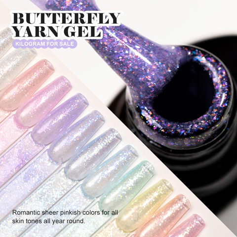 Venta al por mayor 1kg brillo Gel 12 colores mariposa hilo Gel UV esmalte de uñas